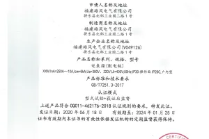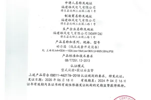複合配電機 ZWX の認証証明書 ( 中国語 )