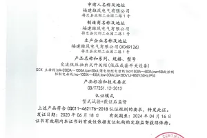 AC 低電圧引き出し式スイッチ機 GCK の認証証明書 ( 中国語 )