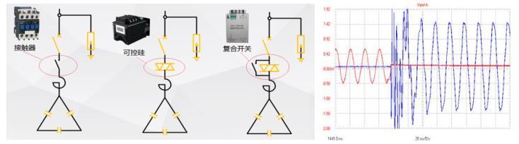 従来、並列コンデンサのスイッチングは、応答時間が 2 レベルスケールであるコンタクトで達成されていましたが、その致命的な欠点は、スイッチング時の大きな突入電流でした。深刻な場合、補償コンデンサの定格電流の 50 ~ 100 倍に達し、大きなアーク光を生じ、コンデンサやコンタクトに損傷を与える可能性があります。現場負荷の実際の動作を踏まえて、同期スイッチ、ハイブリッドスイッチ、サイリスタスイッチなどの接触器に代わるものが徐々に市場に出現しています。これらの代替手段は、ゼロ電圧でのスイッチングとゼロ電流での割込みが大幅に改善され、スイッチング突入電流による機器損傷を大幅に低減しました。