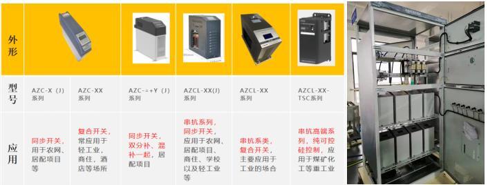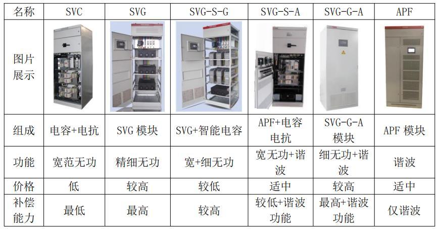 補償装置のタイプに基づいて、スイッチングコンデンサ補償 (FC補償) 、機械的回転補償 (同期補償器、同期発電機、同期モーターなど) 、静的反応電力補償 (静的バー補償器: サイリスタスイッチコンデンサTSC、サイリスタ制御リアクトルTCR、磁気制御リアクターMCR; 静的同期補償器STATCOM; 静的varジェネレーターSVG) 、および複合反応電力補償 (FC TCR、FC MCR、FC STATCOM)。