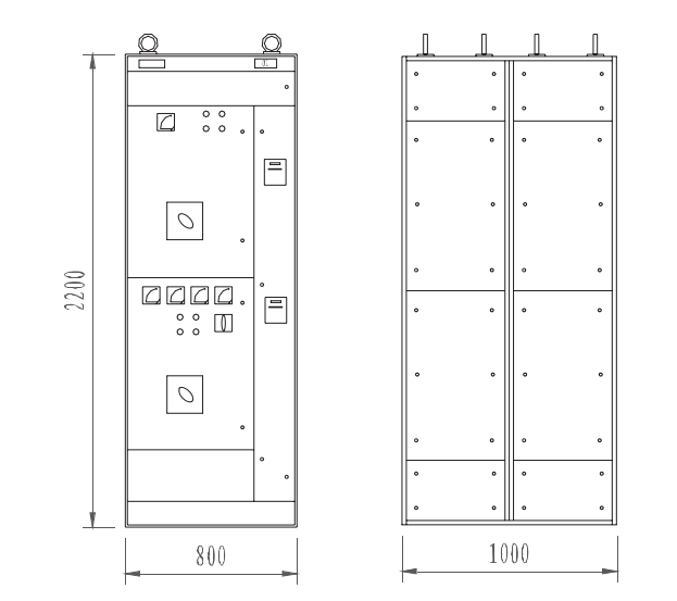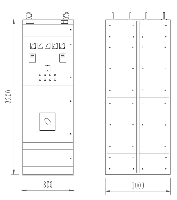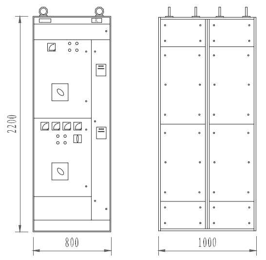 4 。3 つのキャビネットの深さは 800 mm ですが、上部と出力ラインが入力キャビネットを除いてすべて 1000 mm の場合です。