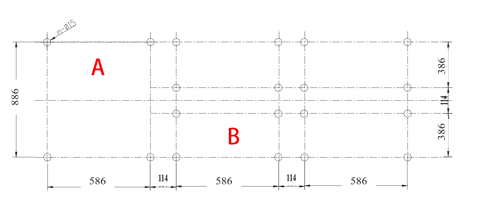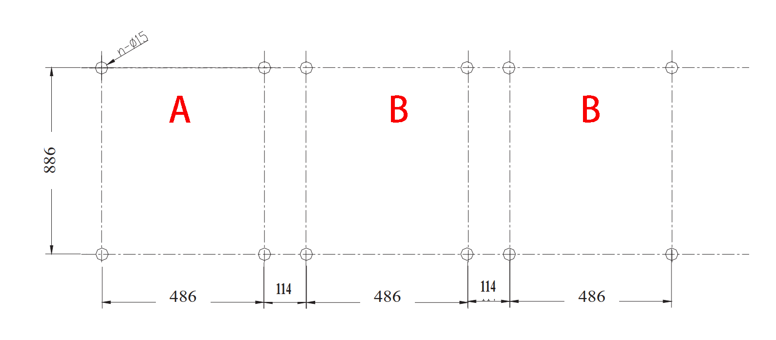 Fig.4 取付けサイズ A: 入口キャビネット B: フィーダーキャビネット